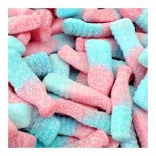 La fameuse bouteille rose et bleue en bonbon gélifié acidulée  au goût bubblegum. Souvent imitée, jamais égalée !!
